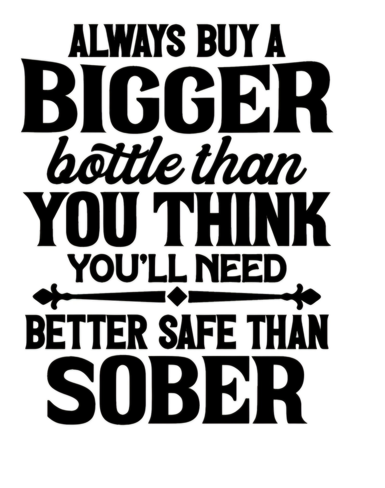 Looking for a creative way to personalize your cups, tumblers, shirts, or other everyday essentials? The ‘Always buy a bigger bottle than you think you’ll need… Better safe than sober’ decal is perfect for adding flair and humor to your favorite belongings. Carefully designed to be bold and attention-grabbing, this decal turns ordinary items into standout pieces with a touch of personality. Please note that decals are designed specifically for custom items you order—individual decal sales are not available.