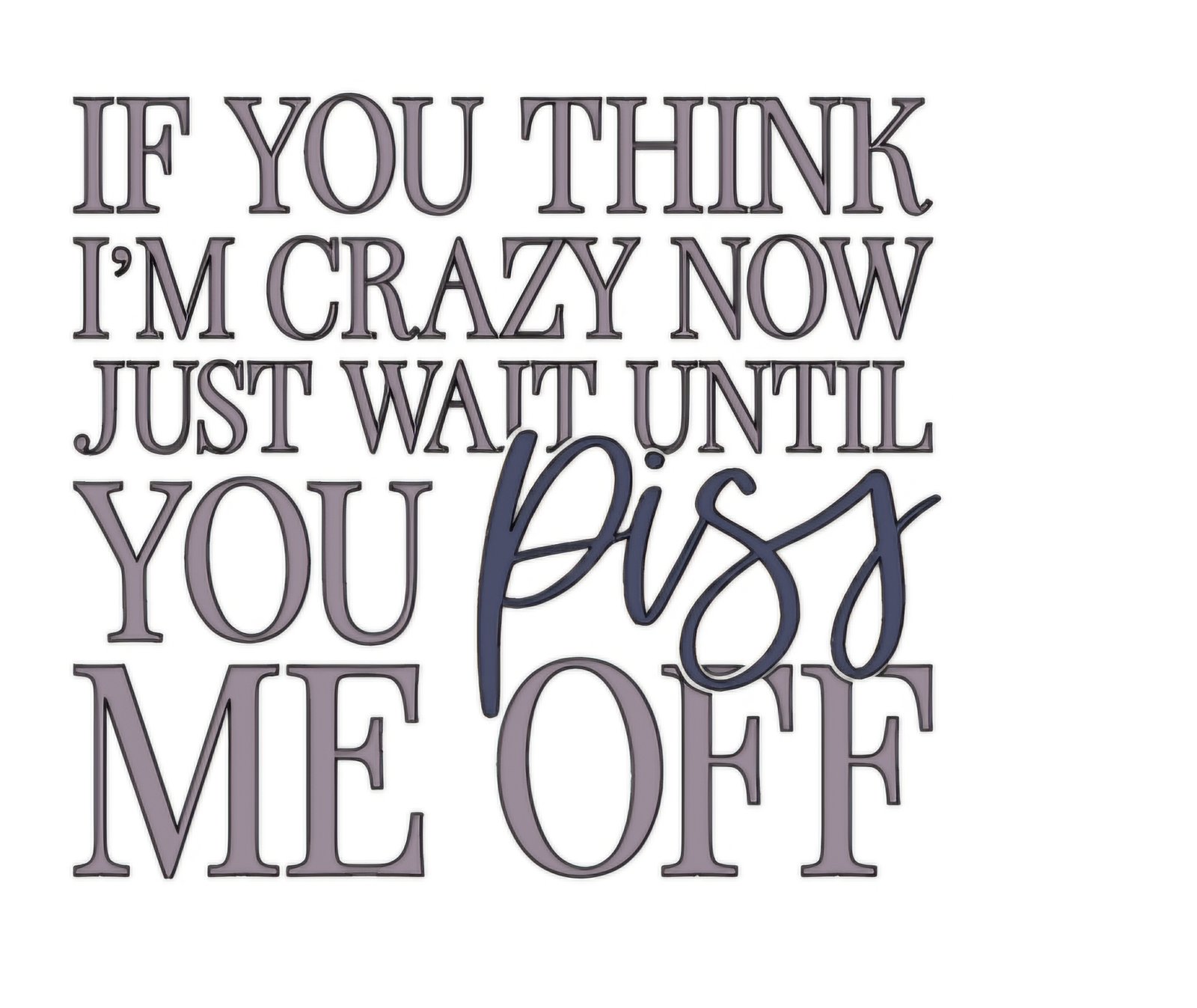 Want to turn heads and add a pop of personality to your favorite items? This attention-grabbing decal features the phrase, “If you think I’m crazy now just wait until you piss me off!” Whether it’s your cup, tumbler, shirt, or similar items, this decal is the perfect choice to express individuality with a touch of humor and sass.