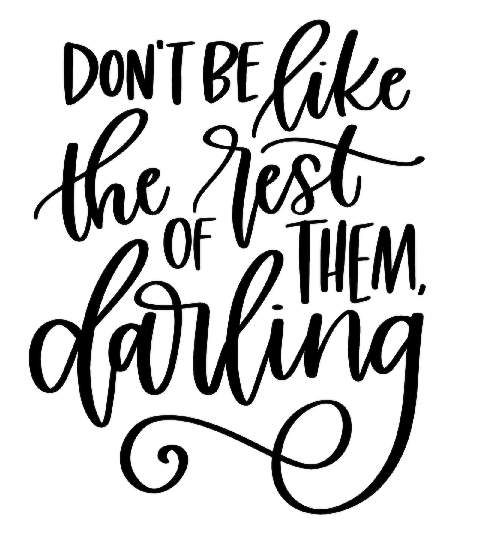 Express your individuality with our stylish motivational decal that carries the inspiring message: “Don’t be like the rest of them darling.” This empowering design is perfect for those who love standing out and making a mark wherever they go. Whether you’re adding a personal touch to a favorite cup or creating a unique statement piece, this decal offers endless possibilities to showcase your creativity and personality.