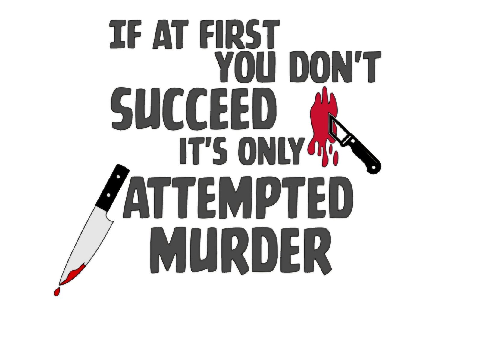This decal is the perfect way to add a touch of dark humor to your tumbler, shirt, or any other custom item. Featuring the text “If at first you don’t succeed, it’s only attempted murder” alongside chilling bloody knives, this design marries edgy aesthetic with a playful twist. It’s bound to turn heads and spark conversation wherever it’s seen!